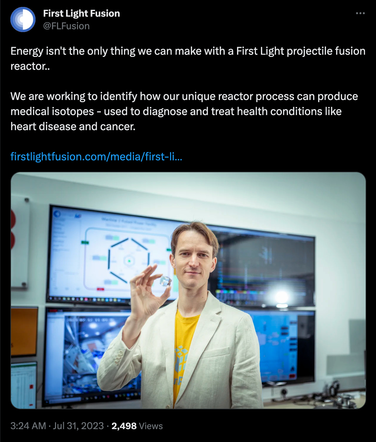 🔮 Glimpse #1 — First Light’s inertial fusion reaction could also produce cancer treatments as a by-product without any impact on energy