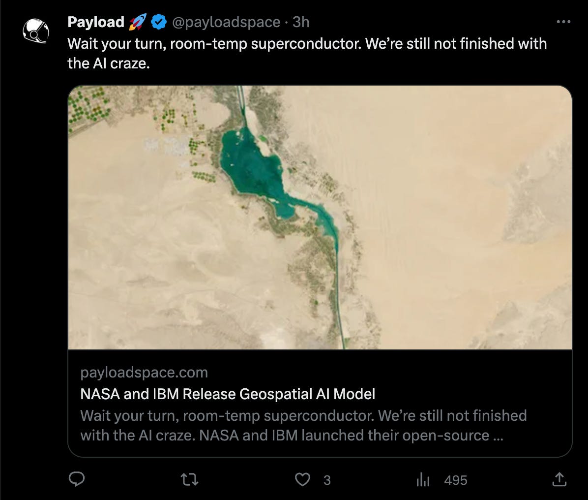 🔮 Glimpse #3 — NASA teamed up with IBM to release an AI model of their 250,000 terabytes of satellite data